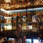 As you walk up to the restaurant you can see that there is outside seating as well as (obviously) inside seating. After entering the restaurant, one walks straight into the casual dining café where there is a very unique, innovative glass door with miniature alcohol bottles lining it from top to bottom. I thought that the glass door would lead to the kitchen but was totally surprised to note that the door separated a very classy British looking bar from the bistro section.