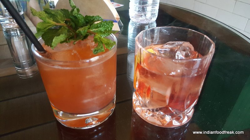 As we glance at the menu we realise it is a value for money food and drinks place which certainly makes it a crowd puller for youngsters. The meal begins on a lovely note with a couple of cocktails on recommendation of the bartender along with small plate of Burrata cheese consisting of cherry tomatoes marinated in Pesto Sauce, Pine nuts, Buratta cheese with micro greens. Goat Cheese salad has smoked creamy goat cheese mousse with roasted pepper, pine nuts, apple puree, basil dust and micro greens. I did not enjoy the burrata. It is normally available Flander’s variant however it isn’t as creamy as I have enjoyed at other places. The goat cheese salad is an exceptionally lovely eat except when we begin eating I notice that the lounge has chosen a different way of presenting most dishes. Instead of having the entire salad together the contents are presented separately which in my opinion could be presented all together. However it does not effect the taste of the salad so happy with the start.