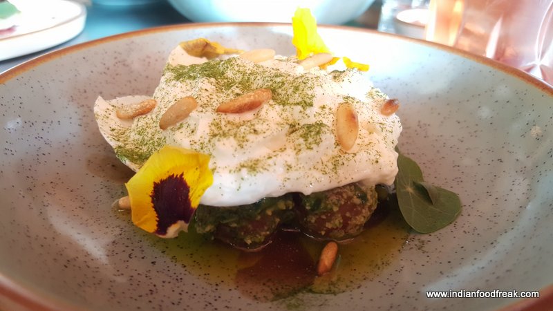 Prawn dynamite which comes next is delicious. These crispy fried tiger prawns with tobacco mayonnaise and mustard cress will have you asking for more not only due to the taste but the amazing pricing of just Rs189 at which the dish comes.