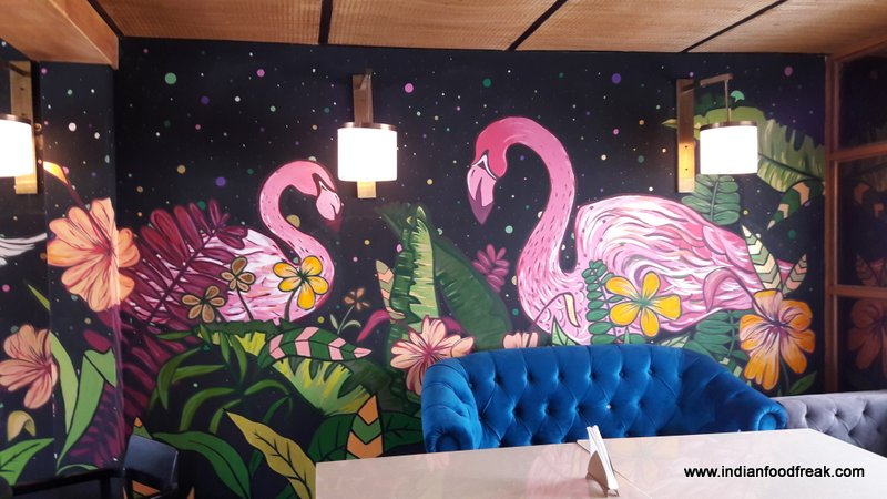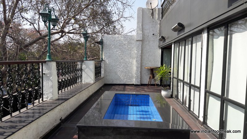 The lounge offers a European, Mediterranean and Italian dining experience. As we enter the building the stairway leads us to the first level which does not have ample lighting and gives a somewhat dingy feel. However am sure the place must be illuminating with the lights in the evening thus giving the ambience a completely different feel. We decide to go to the upper level and that instantly impresses with nice bright light, a terrace area with a fountain, a beautifully painted wall and various curios used to decorate the place. The interiors somewhat remind me of the British era.