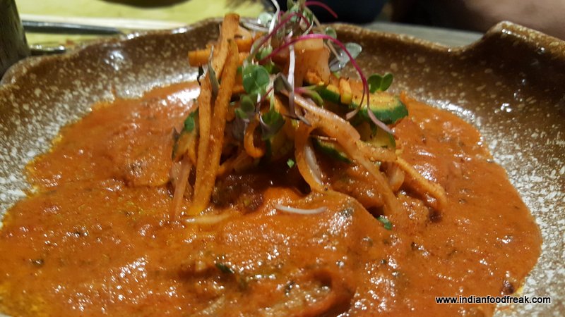 Vietnamese Summer Roll was different from any other roll where fresh vegetable sticks are used as these had in-house pickled vegetables rolled in thin rice paper sheets. Each roll had a mint leaf in it adding to the freshness and was served with spicy mango and sweet chili sauce. A perfect light and healthy, cold finger food one can have anytime.