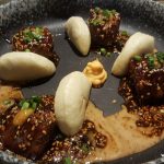 Braised Sesame Chili Pork Belly was an awesome dish. Imported pork braised for four hours in sake wine, soya sauce and served with mini baos. There was only one way to eat this – to dig in with your hands. A sticky sweet and sour sauce covering the piece of belly, dusted with roasted sesame seeds and some spicy mayonnaise squeezed around the belly to balance it out. I had to fight with my friends to get the last piece.