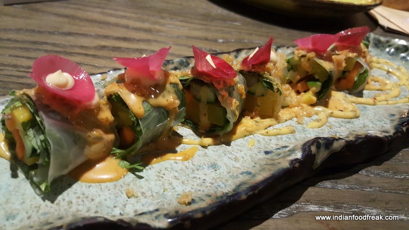 Vietnamese Summer Roll was different from any other roll where fresh vegetable sticks are used as these had in-house pickled vegetables rolled in thin rice paper sheets. Each roll had a mint leaf in it adding to the freshness and was served with spicy mango and sweet chili sauce. A perfect light and healthy, cold finger food one can have anytime.