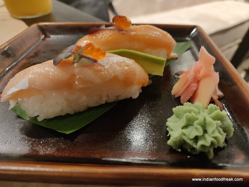 From the choices in Nagiri and Sashimi our picks were Sake Toro with charred salmon belly and Hamachi yellow tail Sashimi. Thoroughly enjoyed both especially Hamachi yellow tail. Their meats are fresh, the flavours of the accompaniments just right, the presentations lovely which made the entire meal journey tempting and enjoyable.