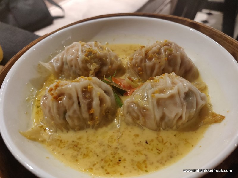 Dimsum are next on our food experience here we make a choice of one and go for another one on recommendation. Prawn in hot yellow curry with Thai herbs was what we chose and was a delight to eat right from the coating to the filling and sauce. The yellow curry was delicious and irresistible to dip into now and then. The chicken and water chestnut dumpling was the next one we ate but did not take a liking to much. Somehow neither the filling combination nor the flavour did much for the taste buds so if you’re a Dimsum fan this one can be avoided.