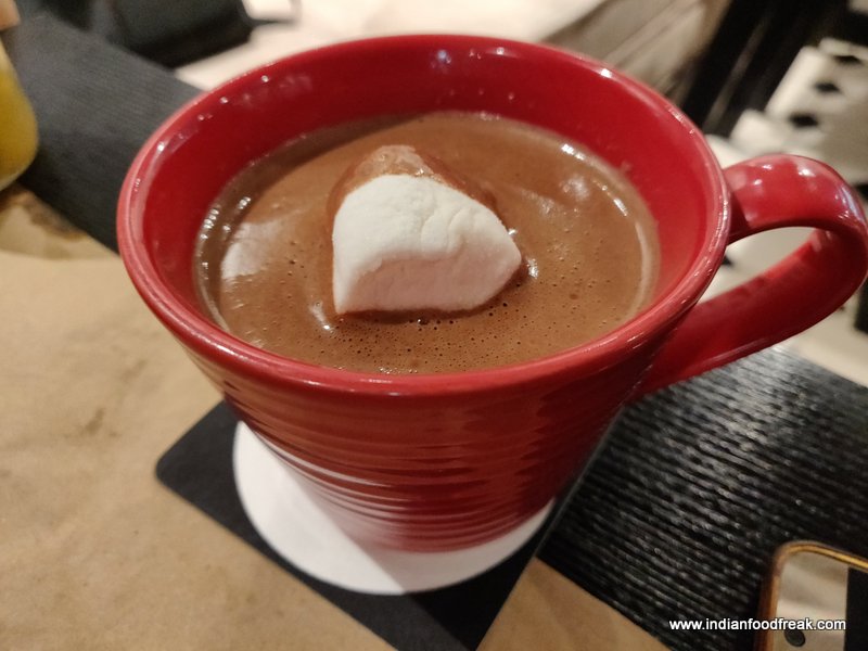 In no mood for dessert we opted for hot chocolate which was blended well with Vanilla ice cream topped with a marshmallow. Every sip of it was simply divine except for the sweetness which could have been slightly less but then I think it is subjective to personal taste. Am I glad we chose to have Hot chocolate instead of a dessert. It is a must try at You Mee, though would be relished even more in winters.