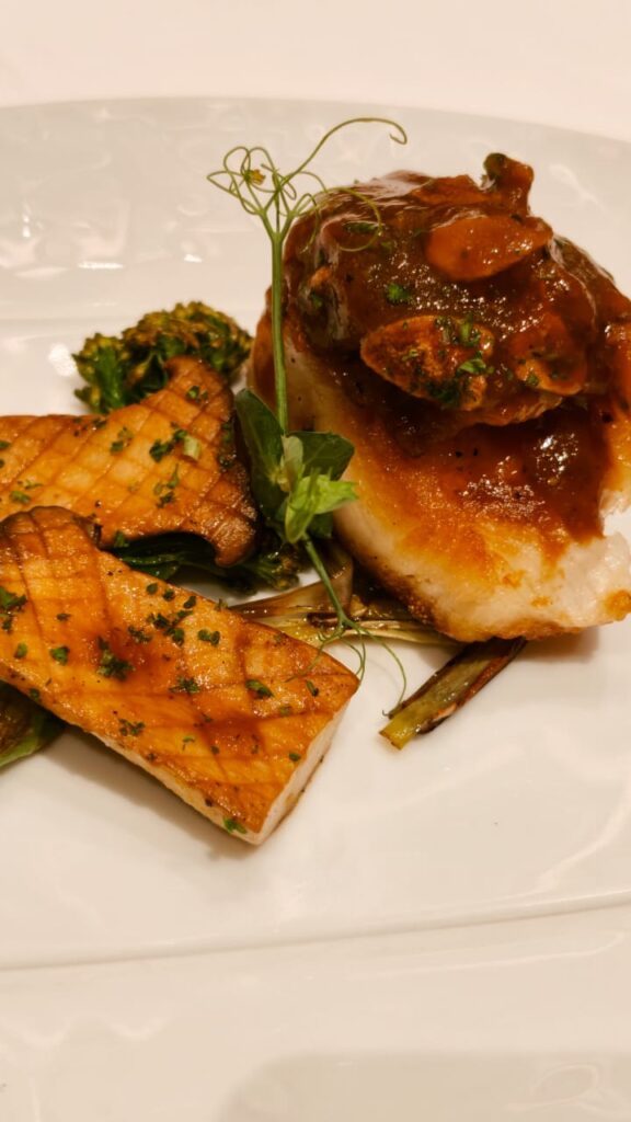 I have never been a fan of abalone as I find it a bit chewy. However Chef braises it well to keep the texture without making it too chewy. The Braised Abalone with Chilean seabass delivers exactly what you hope for. Perfectly cooked fish, delicate and buttery, paired with the distinct texture of abalone. The oyster mushroom jus adds an earthy layer that ties it all together.