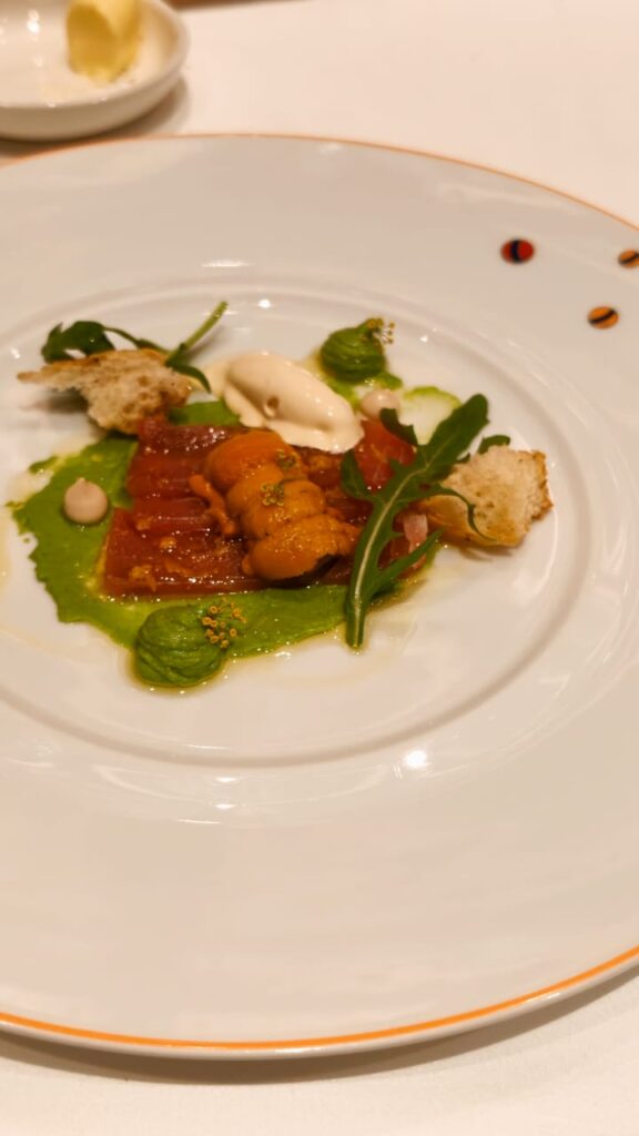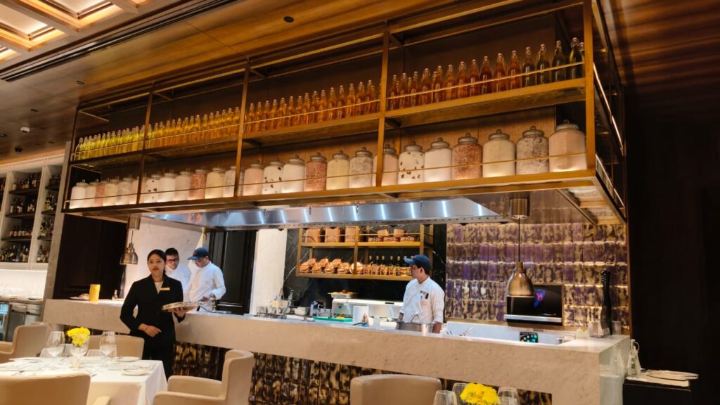 Even before the first course arrives, the space sets the tone. Warm lighting, plush seating, white table cloth, and that open kitchen quietly at work. It feels luxurious without trying too hard. Add to that one of the most thoughtfully stocked wine lists in the city, and you know you’re in for a proper, unhurried dining experience.