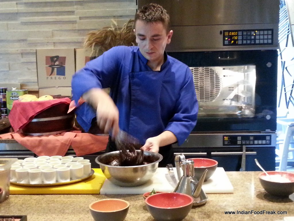Last week, I was delighted to have been invited to taste the new dishes rustled up by Westin, Gurgaon Hotel’s new Italian chef Emilianodi Stefano and showcased at their Westin Culinary Academy. The Italian restaurant Prego, a favourite haunt of mine, was humming with activity for the event. A soft-spoken, measured-toned native of Turin with familial ties to sizzling Sicily, Chef Emiliano was all set to tease and seduce our taste buds with Involtini di Gamberoni e Zucchini allabusara -Deep fried crougettes and prawns rolls with spicy tomato sauce; Gnocchi di Patateallasiciliana-Handcrafted potato dumpling with sundried tomato, pesto, pistachio and ricotta cheese and rounded off with Tortinomorbido al Cioccolato con salsa alleFragole– Hot Chocolate volcano with strawberry coulis.