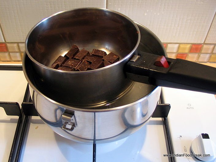 In a bainmarie (see pic) melt chocolate and butter while whisking gently.
