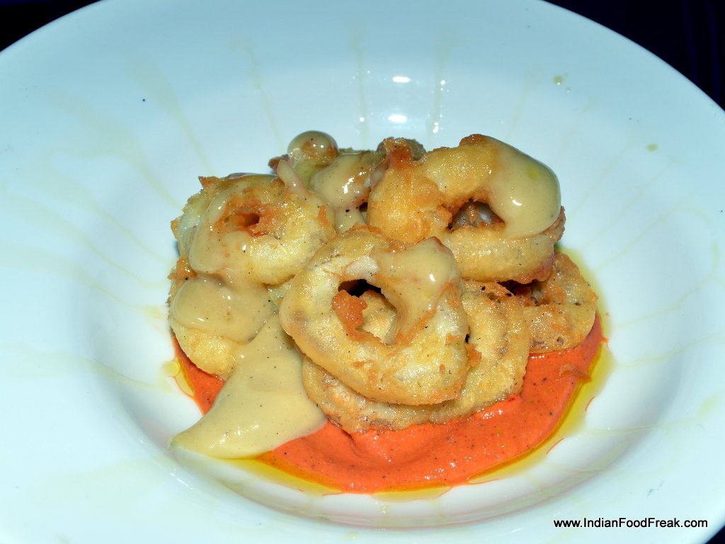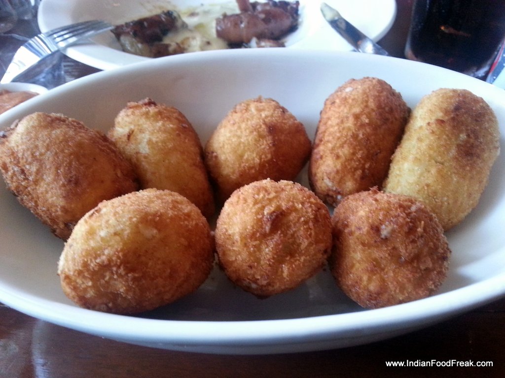 Chef Sushmit Daniels readily comes to the table to explain the menu, which is available, both as a card and is also written on the glass paned window on the outside. The half curtain, the dim lighting, the Gypsy Kings on the iPod, the Joan Miro print on the wall all try to recreate a Hispanic ambience. Without hesitation, I ordered their Ham and Cheese Croquetas and the vegetarian Mushroom variant on both visits. While the first visit had me disappointed what with a perfectly done, lovely looking, and delicious tasting croquetas, served reheated after we pointed out that the inside of the croquets were still cold. But the second visit made ample amends. The Spanish Ham and Mozzarella- Manchego cheese combo was delicious while the mushroom one boasting of the mundane button mushroom, the hearty, nutty porcini and the woodsy, spongy shitake was sheer bliss. The restaurant thoughtfully serves eggless Aioli. Don’t forget to try the croquetas on your visit.