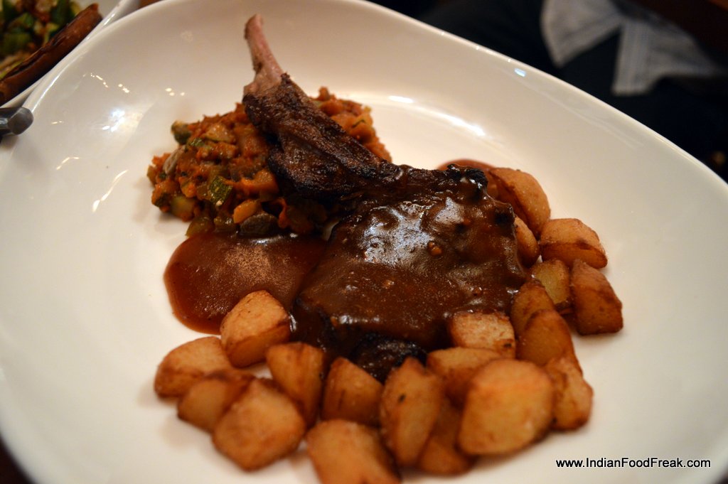With the pintxos satisfactorily polished off we set our sights on the main course. The restaurant bowing to popular predilections offers some pasta and sandwiches too. The Chicken in the Canelloni was a little firm like that of a seekh kebab. A dollop of béchamel added to the mince would have rendered it faultless. Both the Baked Capsicum stuffed with Couscous on a bed of tomato-based sauce and the Eggplant Caviar were topped with panko crumbs and very little cheese. A melting mozzarella or a browned Emmenthal would have provided a clever counterpoint and raised the dishes to a superior level.