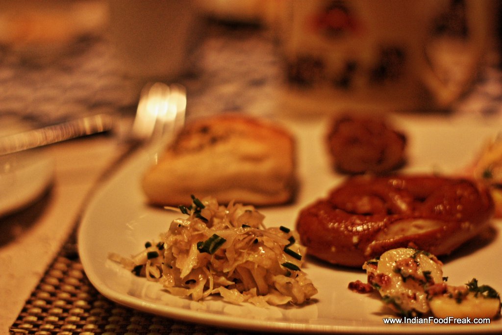 The moment we entered ‘Feast’, Sheraton’s all day dining restaurant we were greeted by Chef Béla Rieck who walked us through the entire spread for the evening carefully explaining the Bratwurst’s from Saurkrauts to Käsespätzle’s of the world. He even told us which dish belongs to which region of Germany. Being the end of a hard week at work, we decided to chill our heels first by sipping some beer. And much to my surprise we were offered Kingfisher draught beer; I partially blame myself into imagining Krombacher or Bitsburgers being served considering its Oktoberfest, but alas import taxes and such keep us away from the ‘good stuff’. Though this was the only faux pas of an otherwise wonderful evening.