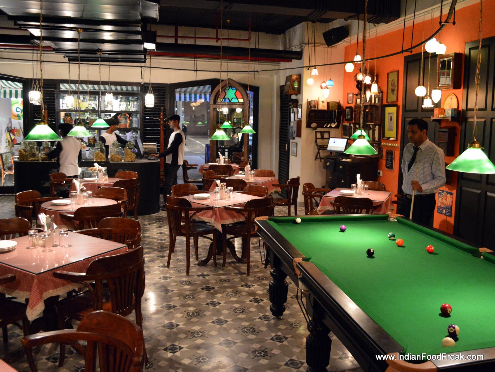 Soda Bottle Openerwala interiors 4Not only did I visit the place once before the launch when food trials were in progress, but I couldn’t resist myself from going for the review on day one of its launch. The sixty-two-seater (covered and al fresco) Soda Bottle Openerwala impresses with the detailing in décor. Each corner has an identity of its own. Old martbaans with cookies, toffees, five stars and those small orange toffees that is so difficult to find in recent times. Soda Bottle Openerwala interiors 3The checkered table cloth and sofa cover which are common in Parsi families and restaurants alike. Old lamp shades, aluminum plates to serve meals, retro music from 80’s, sugarcane machine for fresh and hygienic juice, pool table, carom board and small artifacts adorning the restaurant to give a feel of typical Parsi setup in middle of very up-market cyber city hub. I couldn’t refrain from checking the brain behind the décor and it is none other than A.D.Singh’s wife, Sabina Singh. So while the décor and ambience gets full marks, next obvious thought in mind was if the food will match?