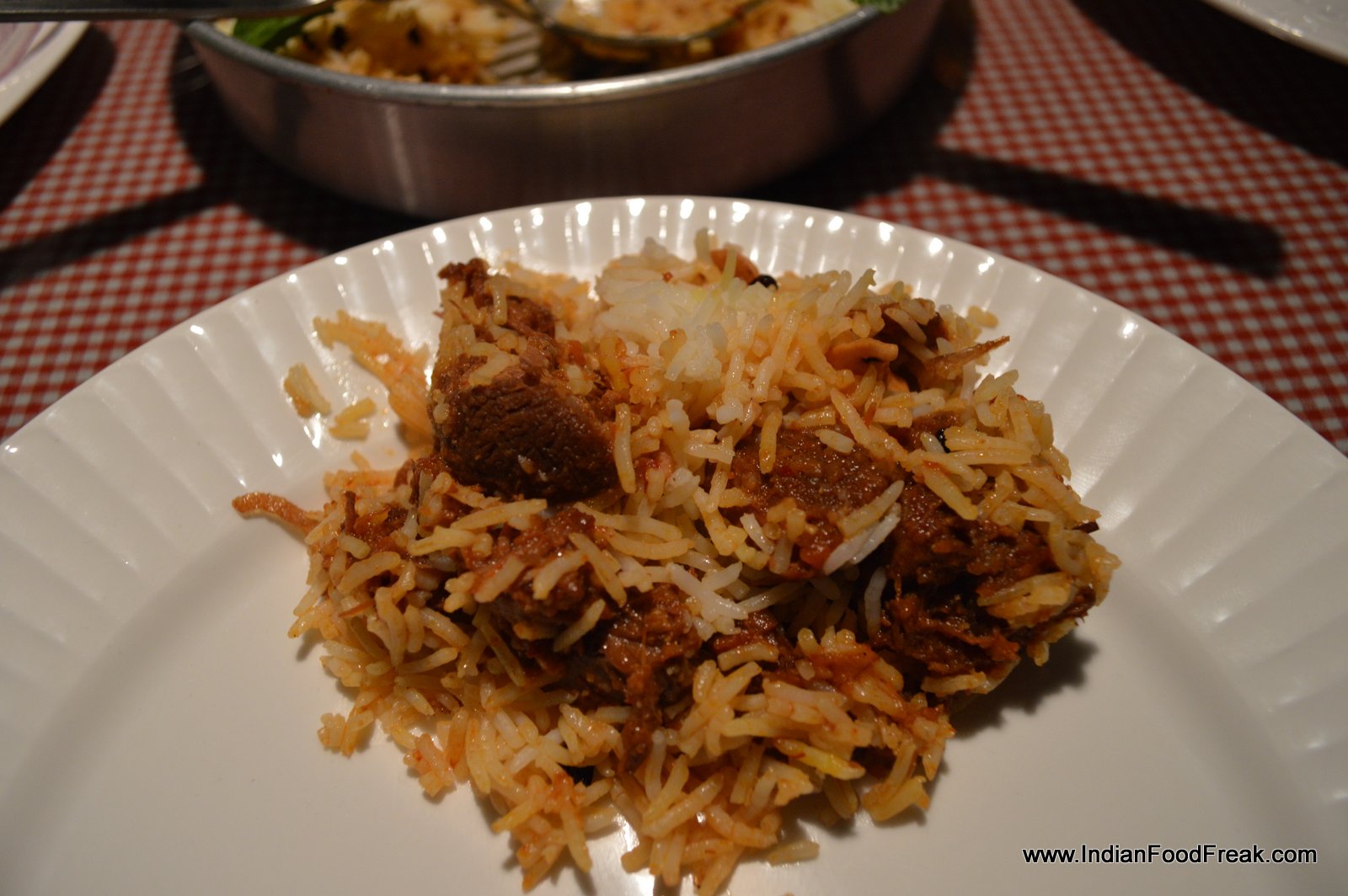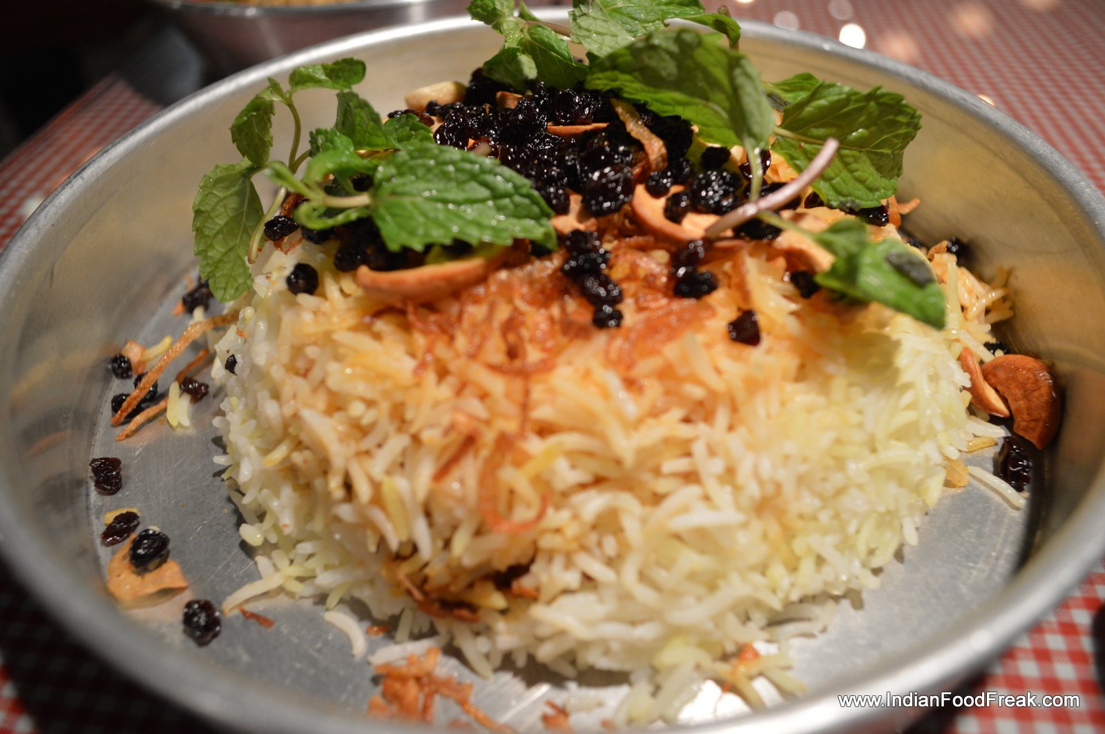 Mutton Beerry PulaoMy only complaint is the entire menu was the famous Patrani Macchi (Rs 495). Traditionally used pomfret would provide more rustic and traditional flavors unlike the kingfish that was used here. However, you should not miss the mutton berry pulao (Rs495). Slight sweet flavor of berries and tanginess rom mutton masala play a symphony of flavors. I had this even at food trials and even this time, I couldn’t have enough of it inspite of being full by now. MyAnjum Kapur friend, Anjum, who joined me, stated it is even better than the legend Britannia at Mumbai. I can neither refute nor endorse her view as I have not eaten at Britannia so far; however this will always be one of my certainly ordered dishes at Soda Bottle Openerwala.