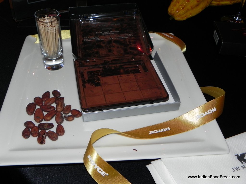 Xocolat old FashionedAnd that is where I met this familiar stranger at the launch. The ROYCE’ Chocolate Pairing Menu will be served at the Bombay Baking Company and Reflections at the JW Marriott Mumbai. Chef Himanshu Tandon has paired the various chocolates with different beverages ranging from tea/coffee to liquor keeping in mind the complex tastes of each of these chocolates. The chocolates shall also be retailed from the same venue.