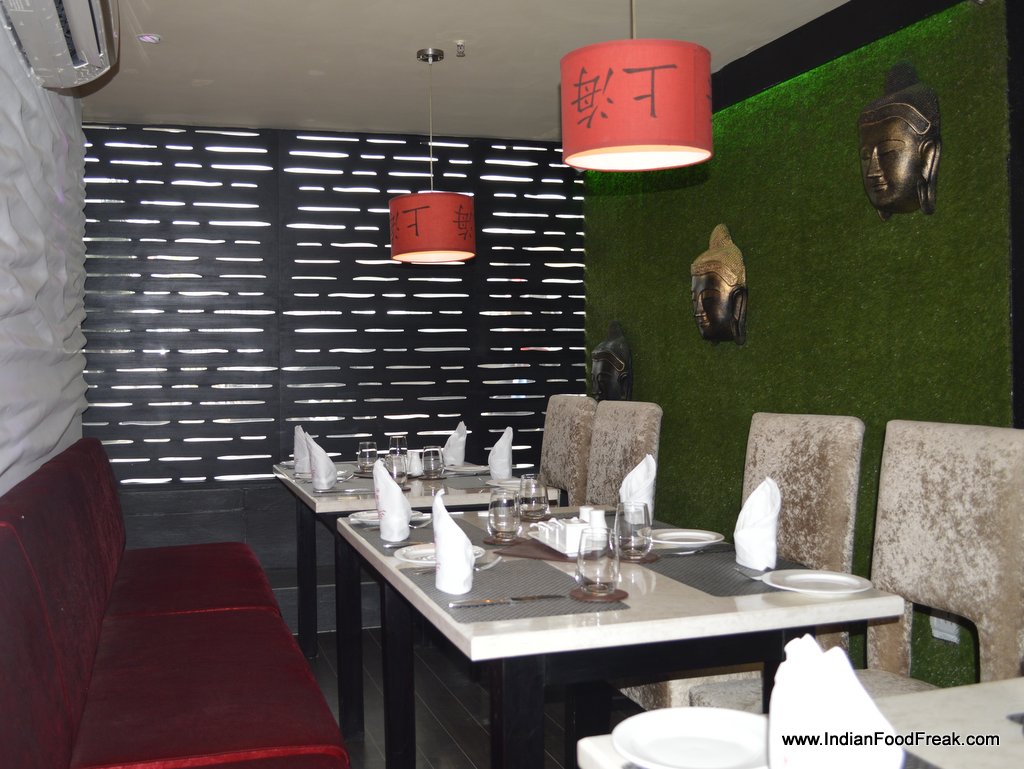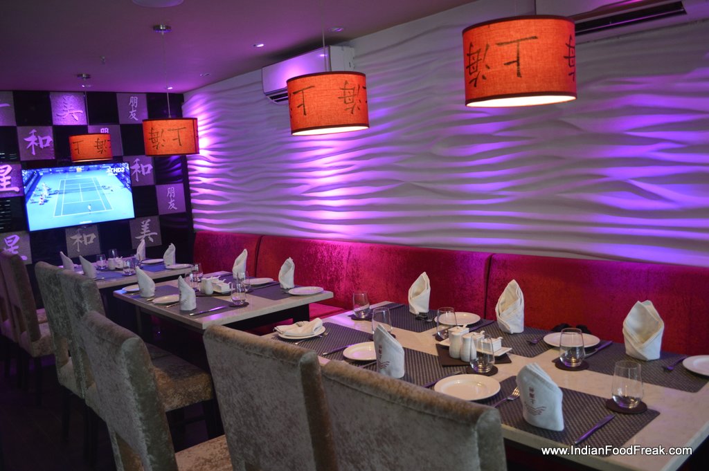 Shanghai 30 is a Pan-Asian cuisine restaurant, specializing mostly in Chinese dishes with some Thai, Japanese and other Asian dishes. Situated at Hauz Khas market, it has a seating capacity of 100 covers. The décor consists of zany colours and neon-ish lighting, allegedly mimicking Shanghai’s night life. My first exposure to the interiors leaves me a bit breathless but I guess the younger generation would like the glitzy décor.