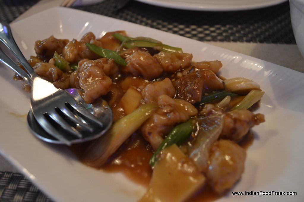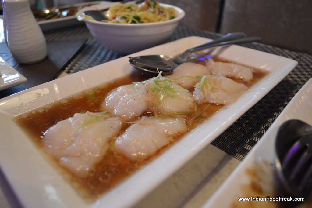 In the main course, jumbo prawns with chilly black bean (Rs 780) has the same problem as wasabi prawns, that is gooey texture due to the improper refrigeration of the prawns. Sliced tenderloin ginger spring onion (Rs 490) suffers from poor quality of the buff used. Steamed fish light soya (Rs 599) is nice and benign, and a mixed vegetable with tofu preserved chilly sauce (Rs 340) is interesting.