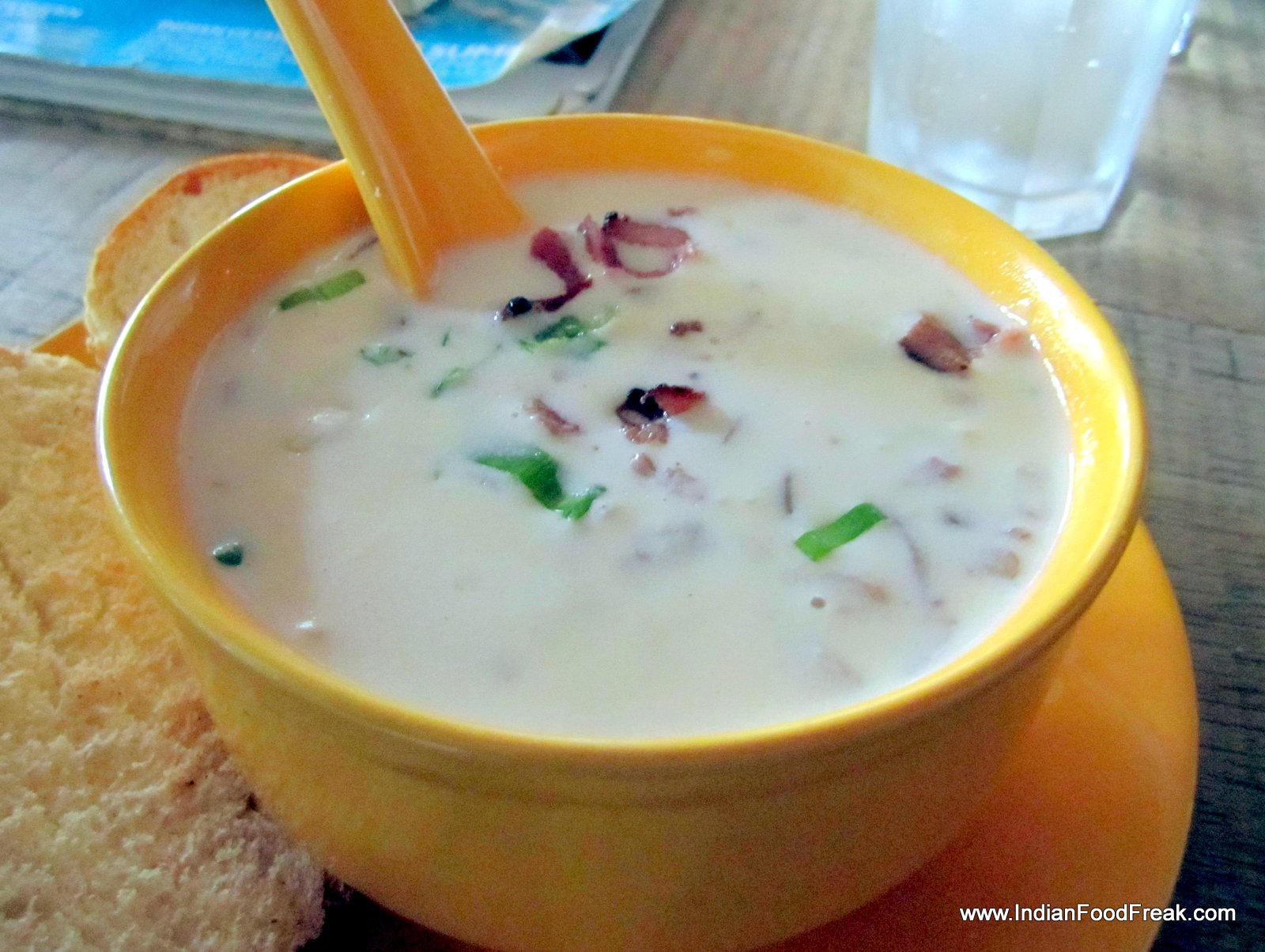 The menu comprises of Italian and contemporary cuisine dishes. The tasting started with a Root Beer and a Mango lime ice tea (Rs 185). While the former is out of the bottle, the latter sounds more interesting than it tastes as it is a bit too sweet for our liking. We decide to have the Bear Mountain creamy mushroom soup with crumbled bacon (Rs 265), which is wholesome and delicious. The consistency and the creaminess are just right with the bacon complemented the spring onion and mushrooms well.