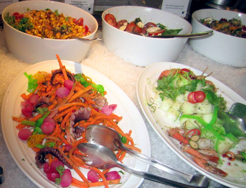 The courtyard section features the back yard barbeque, with a choice of meats and vegetables, traditional sauces and accompaniments. “Catch of the day” ,the sea food bar featuring Kerala Prawns, Pomfret and other sea food made to order with an array of marinades, a real treat for fresh catch from the backwaters, along with Delhi 06 food – the Sigri Kebabs, Kormas and Biryanis. The “Eat street” which is a fashioned like a bustling street serves authentic street food like Moong Dal Vada, Scrambled Carrot Cakes, and Fritto Misto stays true to the spirit of Delhi. With such amazing spread around, the Indian section, especially Delhi 06 one gets overshadowed by the rest.