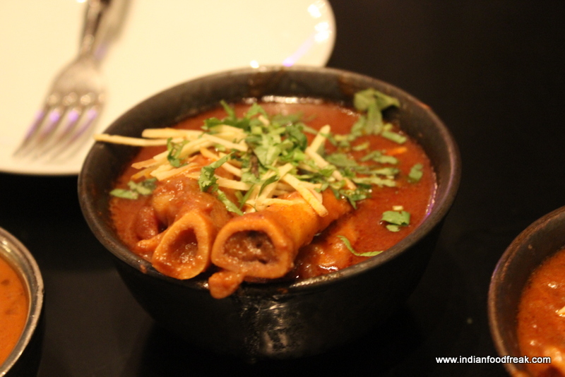 Amongst the vegetarian starters of Dahi Ke Kebab, Chukandar Ki Tikki and Bharwaaan Aloo, I relished the Dahi Ke Kebab the most. The other two starters were not bad but faded in comparison to the Dahi Ke Kebabs for sure.