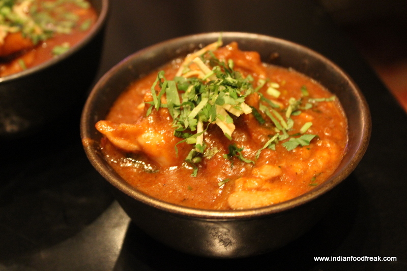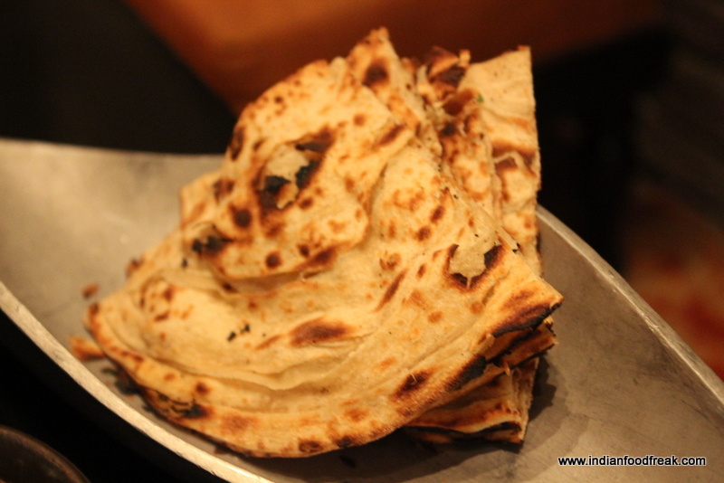 For non-veg starters, we tried a sampling of Shami Kebab, Fish Tandoori, Bhatti da Murg, Amritsari Boti and Murg Kasoori. The shami kebabs were different from their Lucknawi counterparts – quite robust in the spices, a bit drier but certainly delicious and the fish was juicy and delectable with subtle flavors though a bit under seasoned but nevertheless, with good clean flavours. The Murg Kasoori was marinated in pineapple puree giving it a slight, sweet note and had smokey flavours – a good neat starter. The starter that stood out for me was the Mutton Boti which, though a bit chewy, was seeped in flavours. The marinade in the boti had impregnated the pieces and one could taste it in each bite.