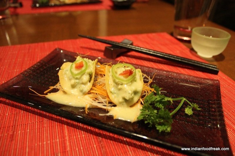 I am a sucker for warm Sake and here too I started off the evening with warm Sake which was light and very aromatic, the jasmine aroma wafting and hit the nose and then the warm fuzzy feeling of the alcohol burning through the stomach was quite a fun experience and a perfect way to begin the evening.