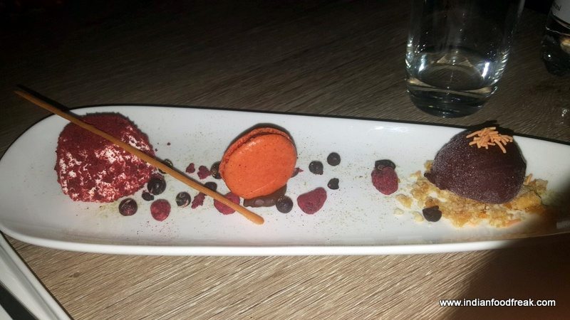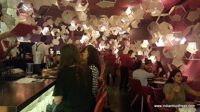 Amuse BoucheThe first thing that hits you as you walk into the restaurant is its futuristic design. 3D projection lights are often projected on the hanging cuboids which gives the place a look right out of sci-fi movie. Though the music is a tad bit loud, one should not be surprised to see senior citizens as well as kids dining with their families in this restaurant.