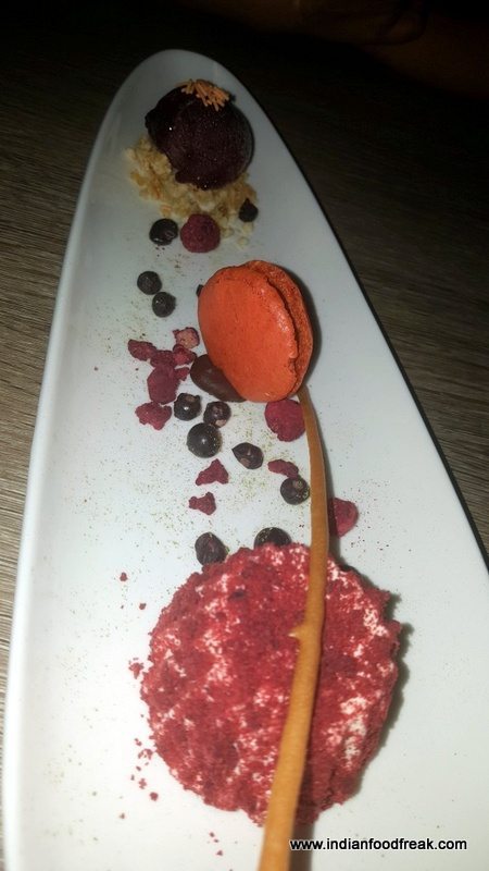 Assisette of Banana Split True to its theme, Pa Pa Ya served us two beautifully crafted desserts, one of which was called Azuki Velvet Cake and consisted of a blueberry sorbet, dark chocolate macaroon and a red bean cake; and the other one was called Assisette of Banana Split which was an extremely interesting rendition of five different banana based desserts. Decadent, rich, classy, beautiful and delicious are the adjectives that come to my mind as I think of these two desserts.