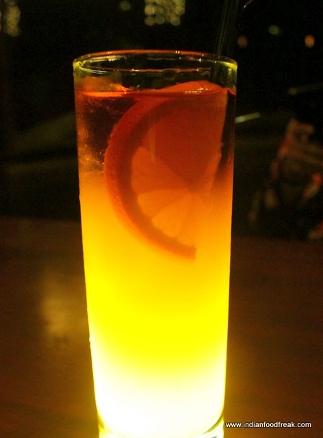 The other day when we landed there, the match between West Indies and Sri Lanka was on. As the first drink of the evening, we asked for a Mai Tai (Rs.250). The drink was good. I had planned to go slow on alcohol and hence went by the server’s recommendation and opted for a cooler called Hangover Cure (Rs.150). Little sweet and tangy, this one can be a mild cure.