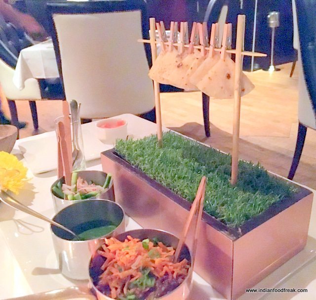 The Chilli Hoisin Duck Khurchan with Roomali Roti Pancakes – a desi interpretation of the classical Peking Duck came most inventively presented!  Mini rotis hanging with pegs on a clothes line, accompanied with a fresh chutney and the duck.  Making your own mini roll for the devouring is as interactive as food can get at TresInd!