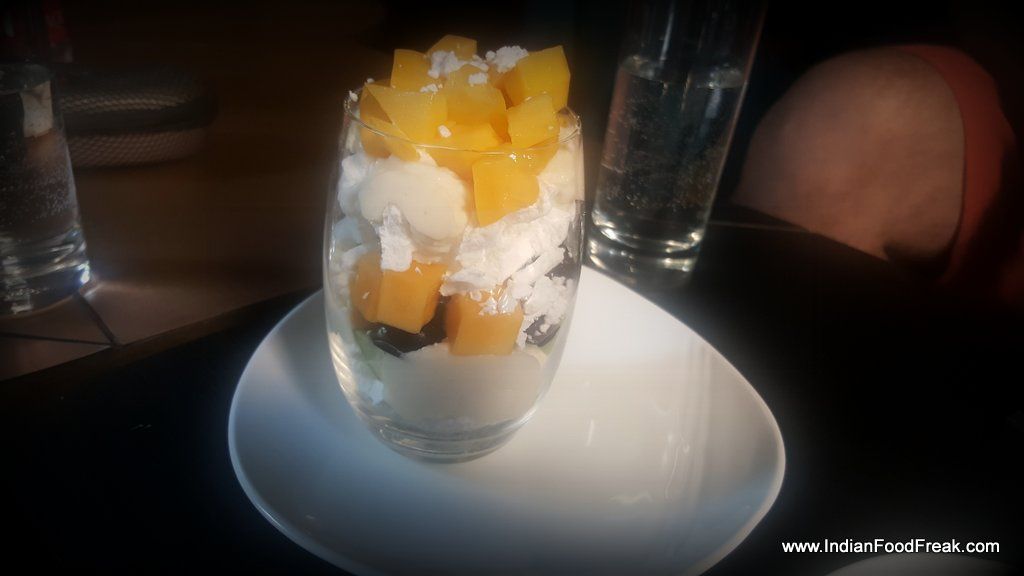 I end the meal with a baked yogurt dessert of Vanilla meringue. The dessert is the usual fare and does nothing to bring a smile on the face.