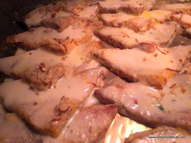 And then they arrived – the most tender Kakori Kebabs I had ever tasted. I was in seventh Heaven – the kebabs were made with the finest quality mutton mince and some khoya had been added to it making it even more juicy and tender. The Murg Ke Parche was wonderfully spiced with black pepper and garam masala which was quite different from the regular ones. Then there was the Pasanda Kebab – that it was spiced just right goes without saying; what needs a mention is the quality of meat served – it was top of the the line, the best cut with little bit of fat on it which added to the texture and taste.