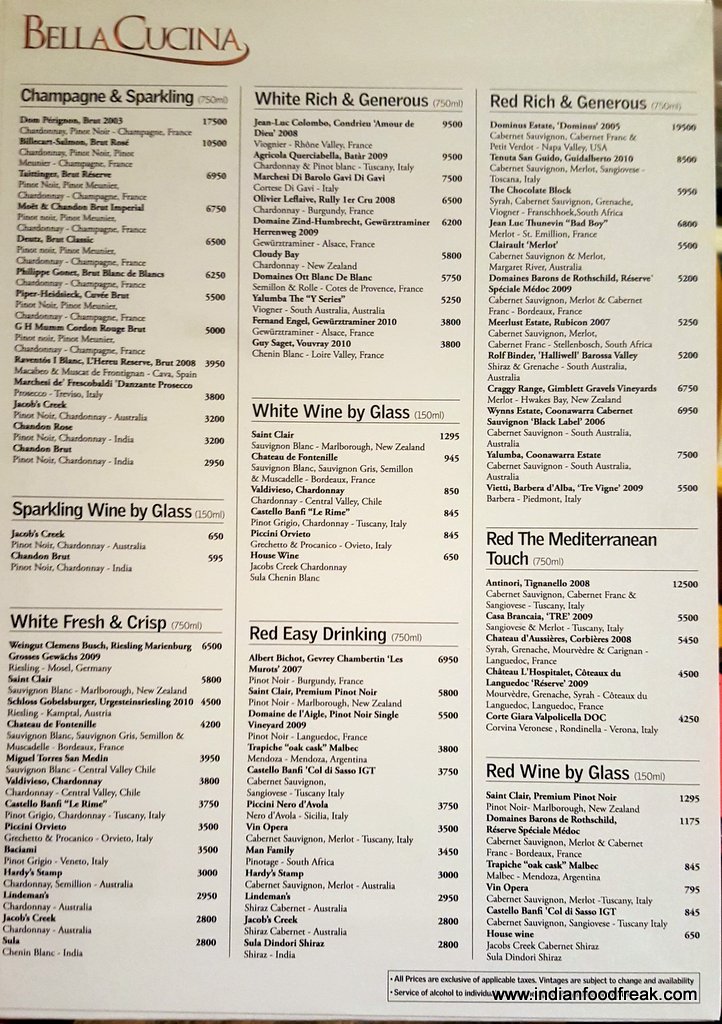 Address: Bella Cucina, Le Meridien, Sector 26, MG Road, Gurgaon-Delhi border, Gurgaon | Phone: 0124-4992000