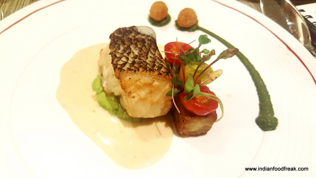 Trying to avoid meats, I focus on the seafood. If you are fond of ravioli, don’t miss the Prawn Ravioli. The Parmesan Crusted Scallop is beautifully seared. I would have liked bit less of semolina to be used in the parmesan crisp that was served on the side as it made it a bit hard from the middle. I had one of the best Chilean Sea Bass – the skin was crisp and the inside as juicy and flaky as one can imagine. Served along with coriander-vanilla sauce, this is a must try in the menu.