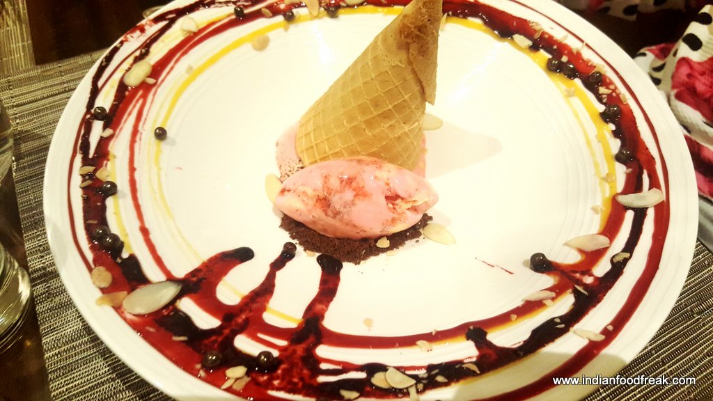The meal ended with the Tiramisu where truffles were plated like coffee beans while my daughter enjoyed Banana-Strawberry Ice Cream in a cone that came beautifully plated.