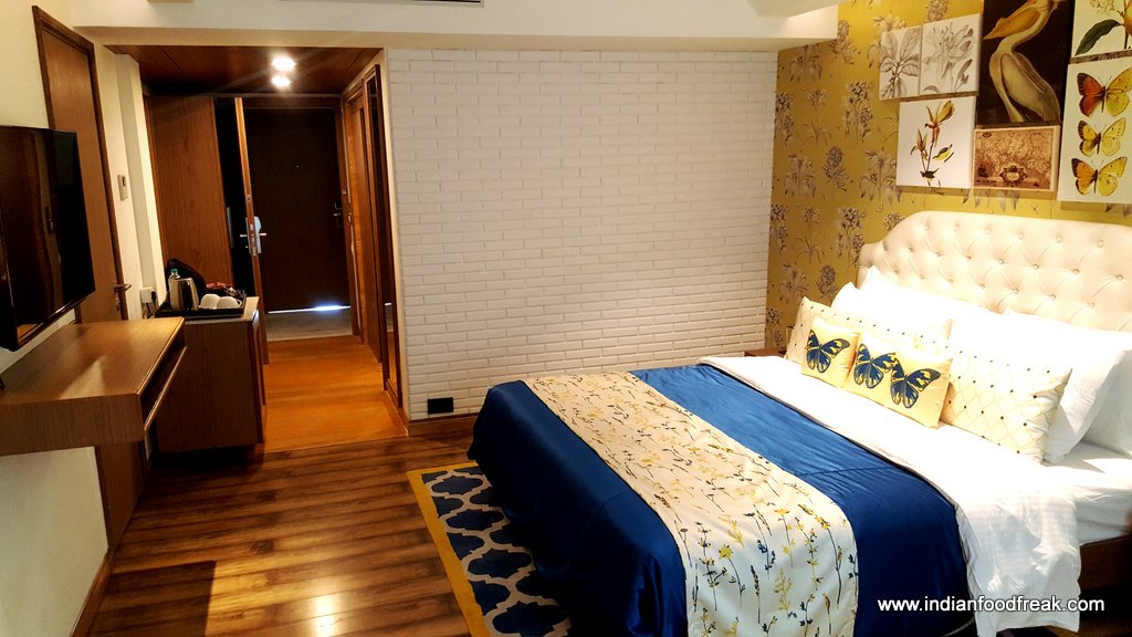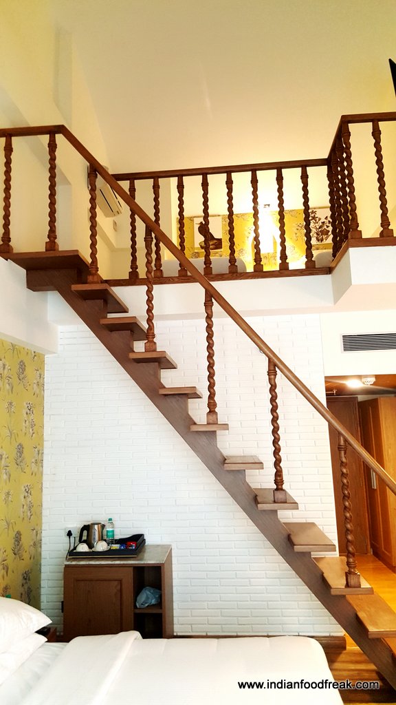 Rooms: Mosaic hotel has three types of rooms – 26 deluxe rooms, 7 suite rooms and 13 attic rooms. While we stayed in the deluxe room which was quite comfortable, we did go and check out other rooms too. The Suite room has an extended portion to accommodate a sofa cum bed with a partition in between. Attic room has twin level room with a spacious master double bed on the ground floor and another twin bed on the top floor. Each room has only 1 washroom and contains tea-coffee maker, digital safe, mini bar, 38’ LED TV etc.