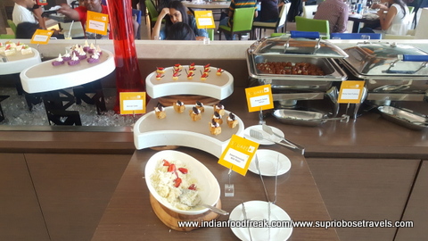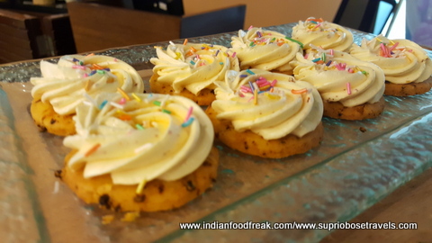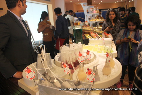 All our main meals (Breakfast, Lunch and dinner) were served at their main rectangular shaped restaurant called the “Square” (perhaps naming it after the colloquial term used for a meeting place, but the irony is too funny for me to ignore). The food spread here is decent, but a bit run of the mill. The summer menu was quite interesting at it used many water vegetables in its spread thereby living up to the freshness of the summers. I also liked the fact that the portions in the buffet were small and apt which helped retained the moisture in many of their dishes. The South Indian, Pizza, paratha and egg live stations are apt, but need faster service. The stand outs from all our meals and the lavish high tea spreads were most definitely the cookies with some unusual frostings like sundried tomatoes and the Ghosht Dum biryani. My compliments to the chef for these.