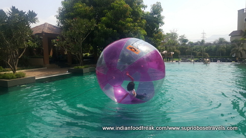 The chaos and cacophony of an outgoing offsite corporate group greeted us as we entered the hotel and it seemed as if too much was happening at the same time. There were jugglers juggling, mascots roaming around clicking pictures with kids, other kids on stuffed horses riding along, a guy on Segway moving about, welcome drinks being served, people playing foosball and table tennis, an MC making the outgoing group dance. The carnival like atmosphere in the lobby itself was a bit too much for the ageing old me to handle but worked well for the kids because before I could set my bag on the floor, I lost the two of them trailing Pinocchio and the Segway man, or somewhere between them two!